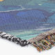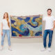 Una dinámica interacción de tonos azules agitados y amarillos tonificantes cautiva el ojo. La composición parece una representación abstracta de una noche estrellada mezclada con olas oceánicas. Los patrones intrincados agregan profundidad, mientras que las salpicaduras de rojo proporcionan un contraste focal.
