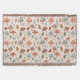 Patrón de caída adorable con hongos personalizados felices azul, naranja y marrón con mejillas rosadas y caras felices. Las hojas verdes, azules, naranjas y cremas también adornan este diseño. El fondo es un color crema claro para terminar este look de otoño.