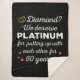 Diseño divertido, perfecto para todo aquel que haya estado casado durante 60 años y para una ceremonia de renovación de la promesa boda. ¡Es un gran conjunto para las parejas! 'Diamante? Merecemos Platinum por aguantarse la cita de 60 años para una pareja que se casó hace 60 años o una pareja que renueva los votos bodas en su aniversario de diamantes. ¿Eres un marido o una mujer romántica? ¡Acentúa tu estilo con este arte! Gran regalo para tu amigo que se casó hace 60 años, esposo o esposa de 60 años, o papá y mamá celebrando su 60 aniversario de boda.