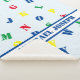 El diseño presenta las letras del alfabeto en colores vivos y brillantes contra un fondo azul pálido. El nombre del bebé se muestra a través del diseño contra una franja blanca con un borde azul brillante. Diseñado para coordinar con la "colección ABC Baby Shower & Nursery".