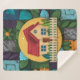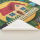 Un fascinante patrón de ícono de casa con una casa encantadora con un techo rojo y una valla de piquete blanco. La casa se encuentra en un ambiente acogedor y acogedor, rodeado de una gran variedad de texturas y colores. El patrón incluye una manta de lana, lo que aumenta la sensación general de calidez y comodidad