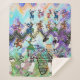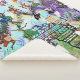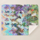 A vibrant artistic painting captures scenes of simplified characters from the exuberant life in Africa, showcasing dancing figures of musicians, drummers, farmers, and shepherds. The colors intermingle like dancing waves, with hues of blue, orange, violet, and green creating a mesmerizing spectacle. The depiction portrays the joyful essence of life in the rich and diverse African continent, with a touch of brown tones adding depth to the composition.