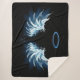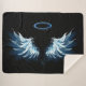 Manta Sherpa Alas del Ángel Azul brillante sobre fondo negro