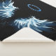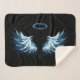 Manta Sherpa Alas del Ángel Azul brillante sobre fondo negro