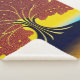 Árbol rojo y dorado en el viento sobre un fondo soleado. Creado mediante software de IA.