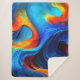 Observen la fascinante fusión de lava feroz y mar fresco en vivos tonos azules, naranjas y rojos. Añade un toque de drama a tu espacio con esta exclusiva obra de arte marina abstracta.