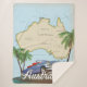 Australia mapea poster de viajes vintage con un hermoso auto clásico viejo.