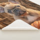 Disfrute de lo último en confort y compañía con nuestra cálida y acogedora manta, que presenta un adorable Bulldog francés de color tímido en medio de un campo de calabazas al atardecer. Es la invitación perfecta para que te reúnas con tu amigo y crees recuerdos preciosos juntos.