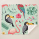Manta Sherpa Aves tropicales, flores, acuarela.