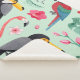 Manta Sherpa Aves tropicales, flores, acuarela.