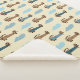 Una manta sherpa con un avión de juguete en azul y marrón.