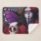 Manta Sherpa Azúcar Skull Roses Rojas Morado