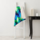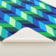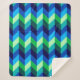 Una manta de sherpa de tamaño mediano con un diseño colorido y sombrío de chevrons en verde lima, turquesa real, azul océano y azul cielo.