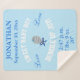 Bienvenido al recién nacido. Personaliza el nombre, la fecha de nacimiento y las estadísticas de nacimiento en texto azul contra fondo azul claro. Bebé azul plateado con Bendiciones escritas en texto blanco en el centro. Deja la imagen de baby rattle, o personaliza subiendo la tuya. Haga clic en editar para seleccionar ninguno, ajustar o rellenar para ajustar el tamaño de la imagen. Diseño original de obras de arte © TamiraZDesigns.