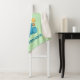 Bebé personalizado lindo vestido con un traje de salto azul con una bacteria amarilla que sostiene a un bebé sonriente.