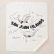 Simple diseño de caricatura con Gales, burbujas y olas y "Islas San Juan" escrito en negrita.