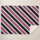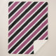 La moderna manta de sherpa para chicas dormitorio tiene un patrón de rayas diagonales en morado, negro y blanco.