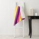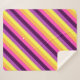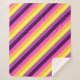 Una manta de sherpa de tamaño mediano con un diseño de patrón lindo y colorido de rayas diagonales en púrpura de ciruela, lavanda, amarillo limón, naranja de melón y magenta brillante.