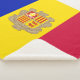Este diseño presenta la bandera nacional de Andorra (oficialmente el Principado de Andorra), que es un microestado soberano sin litoral en la Península Ibérica. Andorra se encuentra en el Pirineo oriental, rodeado por Francia al norte y España al sur. Se cree que fue creada por Charlemagne, Andorra fue gobernada por el conteo de Urgell hasta 1988, cuando fue transferida a la Diócesis Católica Romana de Urgell. Se le conoce como un principado pues es una diarquía encabezada por dos príncipes: el Obispo de Urgell en Cataluña, España, y el Presidente de la República Francesa. Andorra es una de las naciones más pequeñas de Europa. Los andorranos son un grupo étnico romance de ascendencia catalana original; el idioma oficial de Andorra es el catalán, pero también se habla español, portugués y francés. Andorra la Vella es la capital y la ciudad más grande de Andorra.