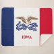 Este diseño presenta la bandera estatal de Iowa, que es un estado en el medio oeste de Estados Unidos, rodeado por el río Mississippi al este y el río Missouri y el río Big Sioux al oeste. Tiene fronteras con otros seis estados: Wisconsin al noreste, Illinois al este y sudeste, Missouri al sur, Nebraska al oeste, Dakota del Sur al noroeste y Minnesota al norte. El estado es a veces conocido como el "Estado Hawkeye". La bandera estatal de Iowa es una tricolor vertical de azul, blanco y rojo, que refleja el estado de EEUU de la historia de Iowa como parte del Territorio Francés de Luisiana. Hay una imagen de un águila calva sosteniendo una cinta larga que dice, "Nuestras libertades que valoramos y nuestros derechos que mantendremos", derivada del Sello de Iowa. La capital de Iowa es Des Moines. Otras ciudades importantes de Iowa son Cedar Rapids, Davenport, Sioux City, Iowa City, Ankeny, Waterloo, Ames, Council Bluffs, Dubuque, Urbandale, Cedar Falls, Marion y Bettendorf.
