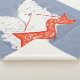 Atardado en, brillantes, rayas estelares, una paloma, con las alas levantadas, lleva, un cartel rojo brillante, en su pico, con la inscripción, las palabras, "Paz, Amor, Alegría"-resaltadas, en relucientes estrellas.