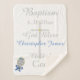 Elegante manta de bigote de tamaño medio con cruz de plata pintada a mano en el centro con el aspecto de acentos dorados. Personalice con los nombres primero y medio del bebé en texto azul, y Fecha de bautismo en escritura plateada. Bautismo, Dios bendiga, Hijo de Dios está escrito en escritura plateada. Pequeño y elegante sonda de niño está en la parte inferior izquierda de la manta con estrella azul, el aspecto de purpurina y la proa azul con guijarros de bonito. El amor está escrito en un texto blanco dentro de rattle. Una hermosa manta de lana haría un regalo especial para el bebé, hijito. Perfecto para mostrar imágenes preciadas en tu frigorífico, caballete, archivador, etc. NOTA: Dependiendo del tamaño, puede ajustar el tamaño del Bebé Rattle haciendo clic en el personalizar y pulsando el botón de control y aumento para aumentar en pequeños incrementos (si aparece un signo de exclamación de advertencia que disminuye en un incremento), y puede mover la imagen y posicionar el Amor dentro del rattle. Arte Gráfico original y diseño © TamiraZDesigns.