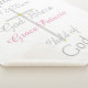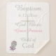 Elegante Baptismo Bebé mantiene una manta de tamaño mediano con cruz de plata pintada a mano en el centro con el aspecto de acentos dorados. Personalice con los nombres primero y medio del bebé en texto rosado, y Fecha de bautismo en escritura plateada. Bautismo, Dios bendiga, Hijo de Dios está escrito en escritura plateada. Pequeña y elegante sonda de niña está en la parte inferior izquierda de una manta con estrella rosa, el aspecto de purpurina y el arco rosado con guijarros de bonito. El amor está escrito en un texto blanco dentro de rattle. Una hermosa manta de lana haría un regalo especial para el bebé, hijito. NOTA: Dependiendo del tamaño, puede ajustar el tamaño del Bebé Rattle haciendo clic en el personalizar y pulsando el botón de control y aumento para aumentar en pequeños incrementos (si aparece un signo de exclamación de advertencia que disminuye en un incremento), y puede mover la imagen y posicionar el Amor dentro del rattle. Arte Gráfico original y diseño © TamiraZDesigns.