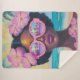un retrato impresionante y vibrante de una mujer de diseño con gafas de sol rosas gigantes que reflejan una playa tropical de ensueño. Rodeada de suaves flores de hibisco y con un fondo oceánico turquesa, esta obra de arte captura la esencia del verano, la belleza y el empoderamiento. Ideal para los amantes de la playa, los coleccionistas de arte vanguardista y la decoración tropical.