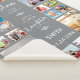 Esta manta Sherpa tiene un collage de 24 fotos con el dicho Bendición esta familia con amor y risas en el centro junto con un corazón rojo sobre un fondo gris. Hay 4 grandes ranuras de collage y 20 pequeñas ranuras para fotos para que añadas tu propia foto en esta manta de lanzamiento. Personalice esta manta Sherpa con su apellido y una fecha. Esto hace un gran regalo de aniversario o de reunión familiar.