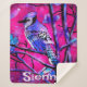 Manta Sherpa Blue Jay Bird Tree Branch Pink Personalized
