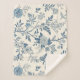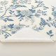 A detailed vintage floral illustration in blue tones, featuring delicately drawn branches, leaves, and blossoms on a light background, creating a classic and elegant botanical look. Toile-de-Jouy