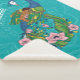 This illustration depicts a cute brown baby sleeping on the back of a beautiful peacock with blue green and yellow feathers and pink flowers in it’s tail. In the background is a green, turquoise mandala. In Hinduism the peacock is associated with Lakshmi who is a deity representing benevolence, patience, kindness, compassion and good luck. The peacock is also the national bird of India. So this product makes a perfect gift for a baby with Indian roots.
