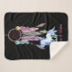 Esta manta de sherpa incluye un mágico caballo blanco y azul, un soñador de bonito y el texto... "Sueños y deseos".