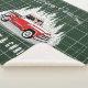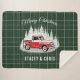 Diga "Feliz Navidad" con este nombre personalizado y manta personalizada de pulpa de mensaje con un camión rojo retro con pinos nevados con escritura y tipografía moderna en blanco sobre un fondo rústico de yeso verde con estampado. El mensaje puede cambiarse a las palabras que elija. Diseñado por © Tim Coffey