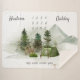 Cubierta de seguimiento de crecimiento con temática de aventura al aire libre para gemelos con un ilustracion acuarela de una familia de ciervos, montañas, pinos y una carpa. Documentar los hitos de sus bebés con este diseño de camping de montaña al aire libre.
