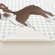 El original ilustracion personalizado de Destei de un lindo perro de raza Boston Terrier color abrigo marrón y blanco chocolate. El fondo tiene un patrón de huellas de perros grises.