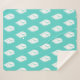 Elegante manta de lana verde mar y blanca con estampado sherpa. Esta manta sería ideal para una decoración de temática costera o náutica.