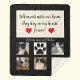 This stunning cat memorial blanket makes a perfect gift to yourself or to someone you know who has lost a beloved cat. The design features a short poem on the top that reads, "When cats enter our home, they stay in our hearts forever!" A heart appears on either side of the word forever. Below the words, you can customize the design with the name of your cat and it will read, "In loving memory of (cat name)." On the bottom half of the blanket you can upload five of your favorite photos. In the center of the photos is a cat paw on which you can add the years your cat lived. This cat memorial blanket will make a cherished keepsake for years to come. Design Copyright Peaches the Tuxedo Cat