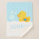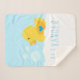 ¡Quack, cuac! La manta Sherpa Rubber Ducky With Blue Heart, diseñada por Enchantelegante Design Company, presenta un lindo pato amarillo con un corazón azul en su ala. El pato amarillo de goma flota en burbujas de baño. ¡Personaliza tu elección de nombre! Esta manta hace un adorable regalo de bebé.