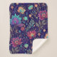 Drift into a dream with this luxurious blanket featuring an intricate and mesmerizing floral design set against a deep indigo or midnight blue background. The pattern showcases stylized lotus flowers and ornate vines illuminated in jewel tones of magenta, turquoise, gold, and vibrant purple. Subtle details like moons, stars, and tiny glowing specks enhance the mystical, celestial, and bohemian mood. This striking textile is perfect for adding depth, luxury, and an enchanting touch to any living space, especially when seeking a cozy, sophisticated, and maximalist vibe.