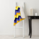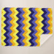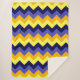 Una manta de sherpa de gran tamaño con un diseño tierno y sombrío de chevrons en azul, amarillo y oro.