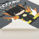 Este gráfico lúdico muestra a un Batman al estilo chibi montando su motocicleta bajo una luna creciente, rodeado de murciélagos voladores. El diseño captura el lado caprichoso del héroe oscuro de Gotham en un formato divertido y amigable con los niños. Con el texto en negrita "¡VROOOOM!" que imita el ruidoso sonido del motor de Batcycle y los vibrantes efectos de explosión en el fondo, el arte es dinámico y lleno de energía. La caricatura que representa a Batman, con su disfraz icónico y su expresión estoica, le da un toque de encanto al personaje legendario. Este gráfico es perfecto para los fans más jóvenes de Batman, y ofrece una visión desenfadada de las aventuras de superhéroes generalmente intensas.