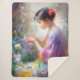 Manta Sherpa Chica admirando una flor en sus manos