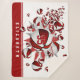 Esta frazada Sherpa flece con temática de baloncesto de chica fresco tiene una "explosión" de baloncesto rojo y blanco de diferentes tamaños y formas estrella grises y rojas - la estrella roja tiene un pequeño patrón de puntos de polka blancos - personalizar con el nombre del jugador y número de camiseta - la franja de color rojo en el borde inferior es personalizable - katz_d_zynes
