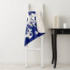 Esta frazada de chica con la temática de fútbol de moda Sherpa tiene una "explosión" de balones de fútbol azules y blancos de diferentes tamaños y formas estrella grises y azules - la estrella azul tiene un patrón minúsculo de puntos de polka blancos - personalizar con el nombre del jugador y número de camiseta - el fondo azul y la franja de color blanco en el borde inferior son personalizable - katz_d_zynes