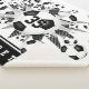 Esta frazada de chica con la temática de futbol de moda Sherpa presenta una "explosión" de pelotas de fútbol blancas y negras de diferentes tamaños y formas de estrellas grises y negras - la estrella negra tiene un pequeño patrón de puntos de polka blancos - personalizar con el nombre del jugador y número de camiseta - la franja de color negra en el borde inferior es personalizable - katz_d_zynes