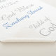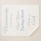 Elegante bebé Christening manta de tamaño medio para personalizar con el nombre del bebé primero y medio en texto azul, y Fecha de cribado en escritura plateada. Christening, God Bless, Child of God está escrito en texto plateado. Pequeño y elegante sonda de niño está en la parte inferior izquierda de la manta con estrella azul, el aspecto de purpurina y la proa azul con guijarros de bonito. El amor está escrito en un texto blanco dentro de rattle. Encantador para el bebé, ahijado. Arte Gráfico original y diseño © TamiraZDesigns.