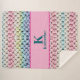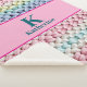 This luxurious, chunky knit blanket features a cozy, multicolor pastel design in pink, blue, mint, and yellow. Personalized with a large initial and custom name in a bright pink banner. Perfect as a soft baby shower gift, nursery decor, or a unique personalized throw.