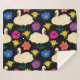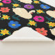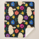 Manta Sherpa Cisnes, flores, fondo negro dibujado a mano.