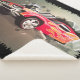 Un auto tipo "Hot Wheels" que chocaba a través de la pared seguramente traerá algo de emoción extra a la habitación de tu hijo. El auto rojo con llamas naranjas está atravesando una pared gris y luego se pone sobre un fondo negro para un puñetazo extra.